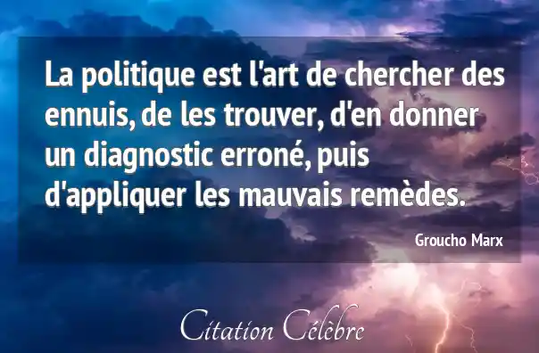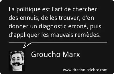 La politique est l'art de chercher des ennuis, de les trouver, d'en donner un diagnostic erroné, puis d'appliquer les mauvais remèdes.