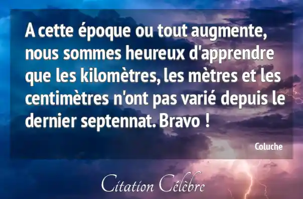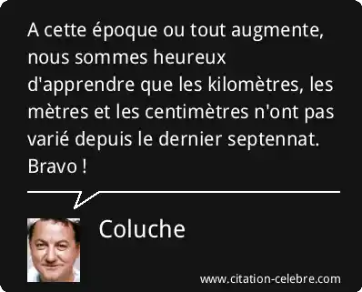 A cette époque ou tout augmente, nous sommes heureux d'apprendre que les kilomètres, les mètres et les centimètres n'ont pas varié depuis le dernier septennat. Bravo !