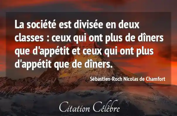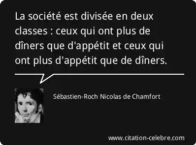 La société est divisée en deux classes : ceux qui ont plus de dîners que d'appétit et ceux qui ont plus d'appétit que de dîners.