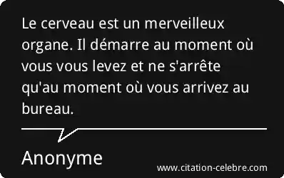 Le cerveau est un merveilleux organe. Il démarre au moment où vous vous levez et ne s'arrête qu'au moment où vous arrivez au bureau.