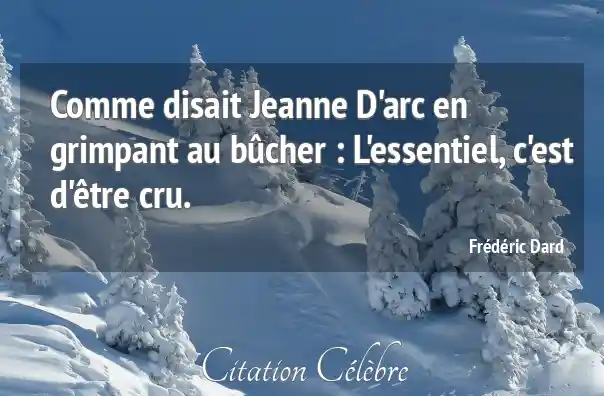 Comme disait Jeanne D'arc en grimpant au bûcher : L'essentiel, c'est d'être cru.