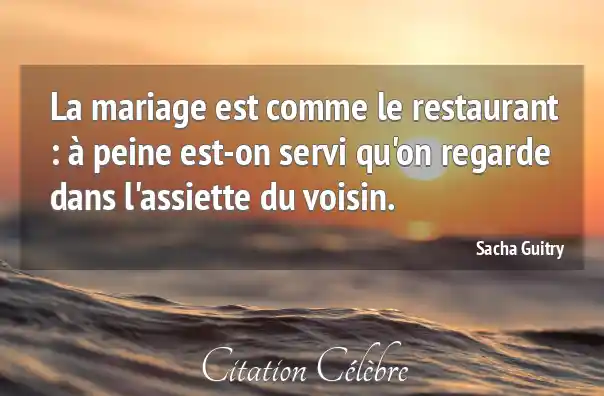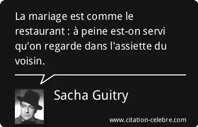 La mariage est comme le restaurant : à peine est-on servi qu'on regarde dans l'assiette du voisin.