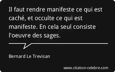 Il faut rendre manifeste ce qui est caché, et occulte ce qui est manifeste. En cela seul consiste l'oeuvre des sages.