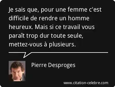 Je sais que, pour une femme c'est difficile de rendre un homme heureux. Mais si ce travail vous paraît trop dur toute seule, mettez-vous à plusieurs.