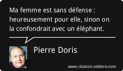 Ma femme est sans défense : heureusement pour elle, sinon on la confondrait avec un éléphant.