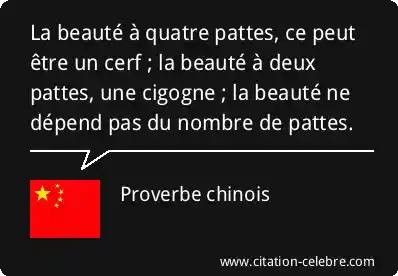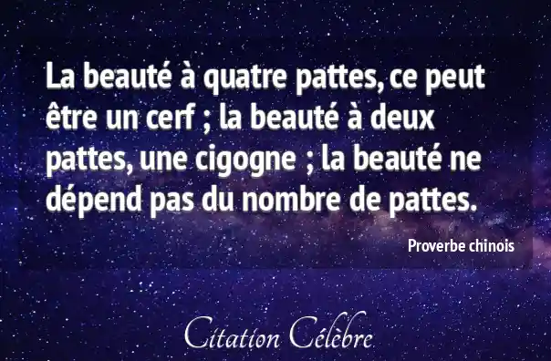 La beauté à quatre pattes, ce peut être un cerf ; la beauté à deux pattes, une cigogne ; la beauté ne dépend pas du nombre de pattes.