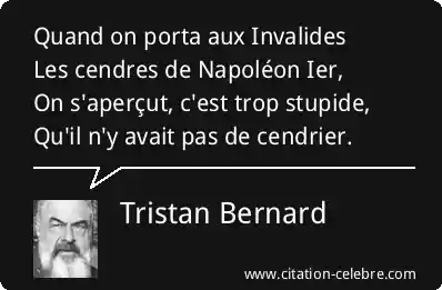 Quand on porta aux InvalidesLes cendres de Napoléon Ier, On s'aperçut, c'est trop stupide, Qu'il n'y avait pas de cendrier.