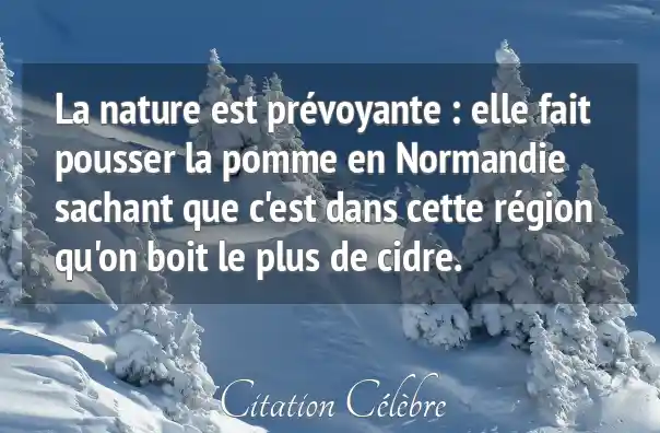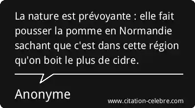 La nature est prévoyante : elle fait pousser la pomme en Normandie sachant que c'est dans cette région qu'on boit le plus de cidre.