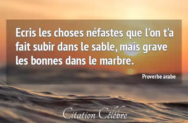 Ecris les choses néfastes que l'on t'a fait subir dans le sable, mais grave les bonnes dans le marbre.