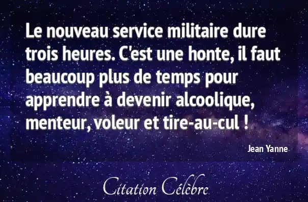 Le nouveau service militaire dure trois heures. C'est une honte, il faut beaucoup plus de temps pour apprendre à devenir alcoolique, menteur, voleur et tire-au-cul !