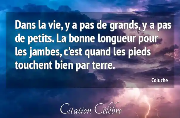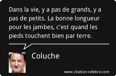 Dans la vie, y a pas de grands, y a pas de petits. La bonne longueur pour les jambes, c'est quand les pieds touchent bien par terre.