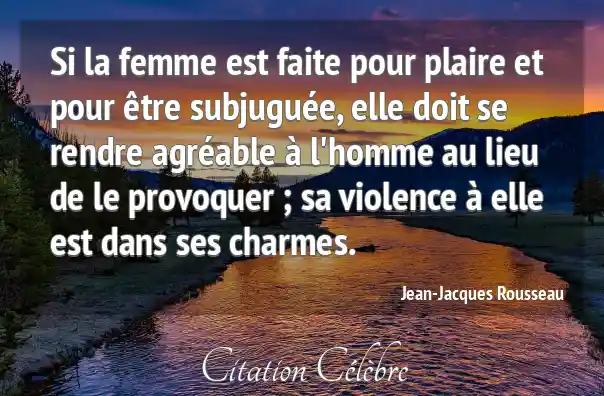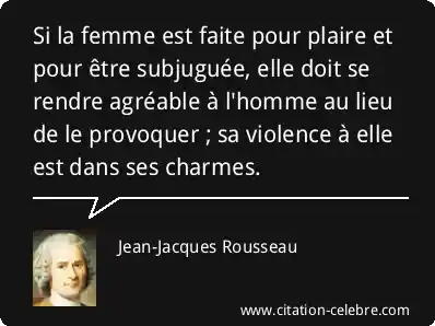 Si la femme est faite pour plaire et pour être subjuguée, elle doit se rendre agréable à l'homme au lieu de le provoquer ; sa violence à elle est dans ses charmes.