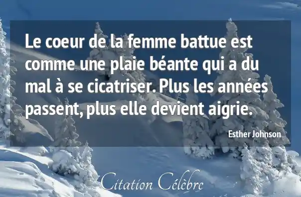 Le coeur de la femme battue est comme une plaie béante qui a du mal à se cicatriser. Plus les années passent, plus elle devient aigrie.