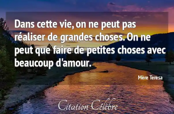 Dans cette vie, on ne peut pas réaliser de grandes choses. On ne peut que faire de petites choses avec beaucoup d'amour.