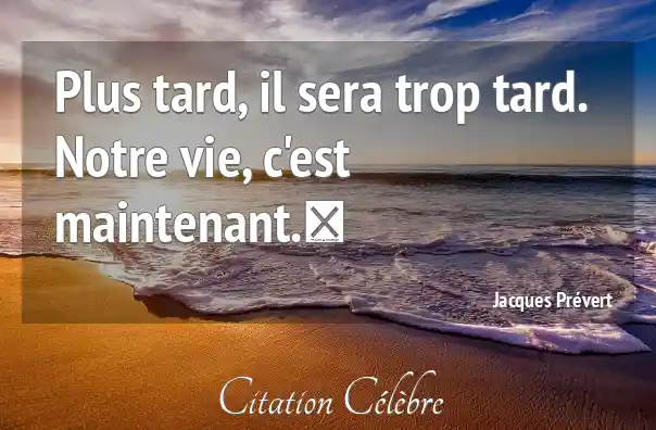 Citation Jacques Prévert vie : Plus tard, il sera trop tard. Notre vie, c'est maintenant. ...