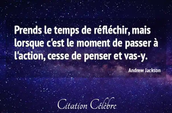 Prends le temps de réfléchir, mais lorsque c'est le moment de passer à l'action, cesse de penser et vas-y.