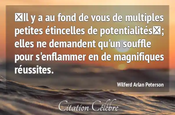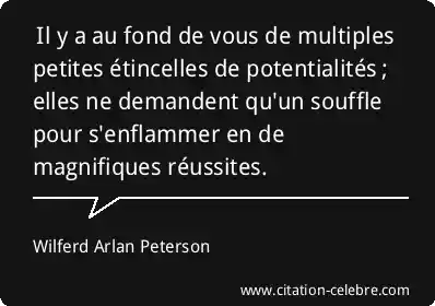Il y a au fond de vous de multiples petites étincelles de potentialités ; elles ne demandent qu'un souffle pour s'enflammer en de magnifiques réussites.