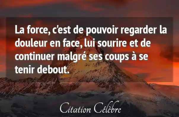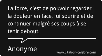 La force, c'est de pouvoir regarder la douleur en face, lui sourire et de continuer malgré ses coups à se tenir debout.