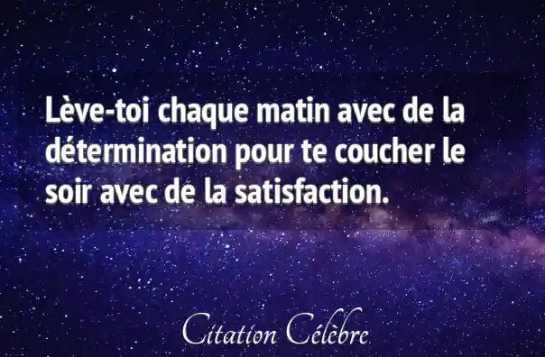 Lève-toi chaque matin avec de la détermination pour te coucher le soir avec de la satisfaction.