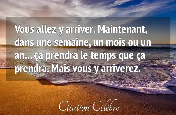 Vous allez y arriver. Maintenant, dans une semaine, un mois ou un an... ça prendra le temps que ça prendra. Mais vous y arriverez.