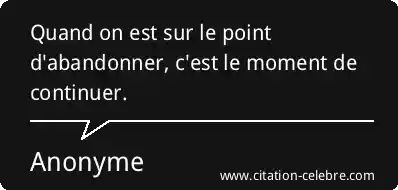 Quand on est sur le point d'abandonner, c'est le moment de continuer.