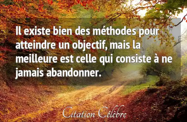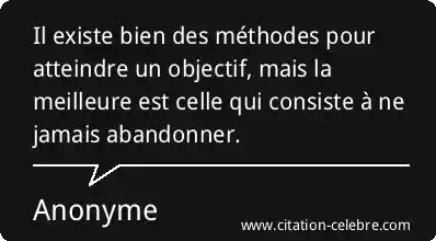 Il existe bien des méthodes pour atteindre un objectif, mais la meilleure est celle qui consiste à ne jamais abandonner.