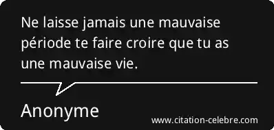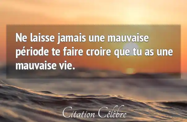 Ne laisse jamais une mauvaise période te faire croire que tu as une mauvaise vie.
