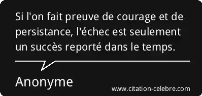 Si l'on fait preuve de courage et de persistance, l'échec est seulement un succès reporté dans le temps.