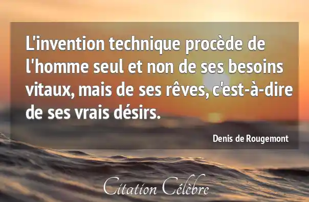 L'invention technique procède de l'homme seul et non de ses besoins vitaux, mais de ses rêves, c'est-à-dire de ses vrais désirs.