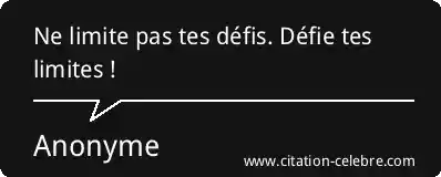 - Figure de style : La phrase utilise un parallélisme et une antithèse très efficaces : « Ne limite pas tes défis » s'oppose à « Défie tes limites ! ».