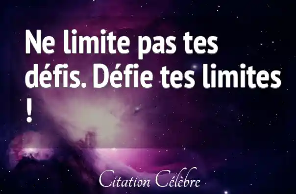 La citation « Ne limite pas tes défis. Défie tes limites ! » est un puissant appel à l'action, au dépassement de soi et à la proactivité.