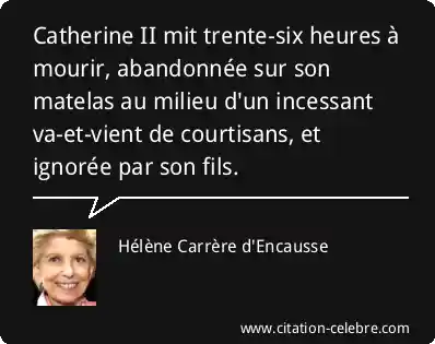 Catherine II mit trente-six heures à mourir, abandonnée sur son matelas au milieu d'un incessant va-et-vient de courtisans, et ignorée par son fils.