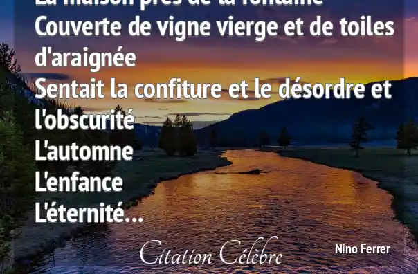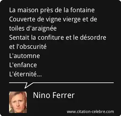 La maison près de la fontaineCouverte de vigne vierge et de toiles d'araignéeSentait la confiture et le désordre et l'obscuritéL'automneL'enfanceL'éternité...