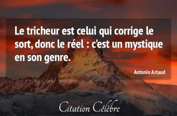 Le tricheur est celui qui corrige le sort, donc le réel : c'est un mystique en son genre.