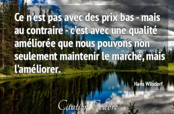 Ce n'est pas avec des prix bas - mais au contraire - c'est avec une qualité améliorée que nous pouvons non seulement maintenir le marché, mais l'améliorer.