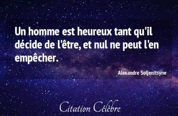 Un homme est heureux tant qu'il décide de l'être, et nul ne peut l'en empêcher.