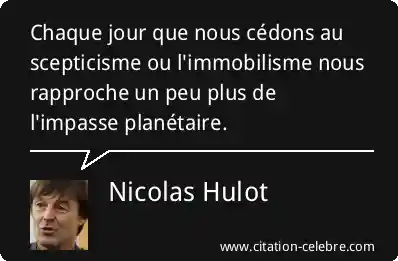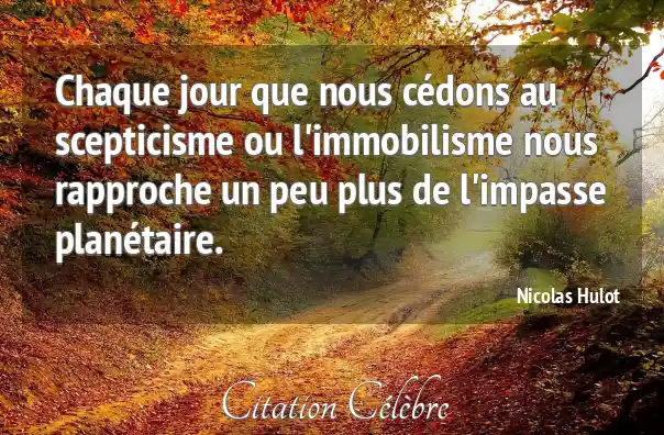 Citation Nicolas Hulot jour : Chaque jour que nous cédons au scepticisme ou l'immobilisme nous...