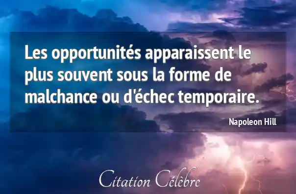 Les opportunités apparaissent le plus souvent sous la forme de malchance ou d'échec temporaire.