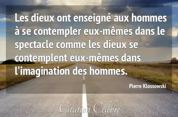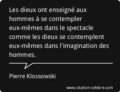 Les dieux ont enseigné aux hommes à se contempler eux-mêmes dans le spectacle comme les dieux se contemplent eux-mêmes dans l'imagination des hommes.