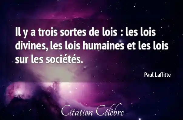 Il y a trois sortes de lois : les lois divines, les lois humaines et les lois sur les sociétés.