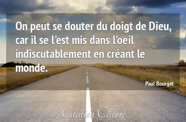 On peut se douter du doigt de Dieu, car il se l'est mis dans l'oeil indiscutablement en créant le monde.