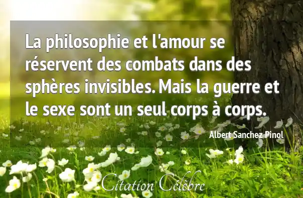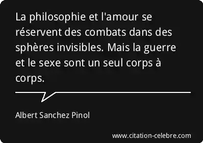 La philosophie et l'amour se réservent des combats dans des sphères invisibles. Mais la guerre et le sexe sont un seul corps à corps.