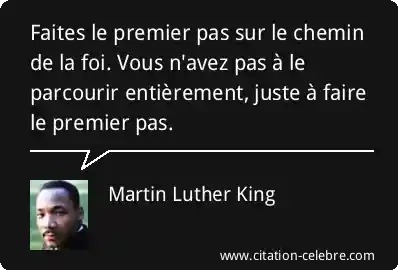 Faites le premier pas sur le chemin de la foi. Vous n'avez pas à le parcourir entièrement, juste à faire le premier pas.