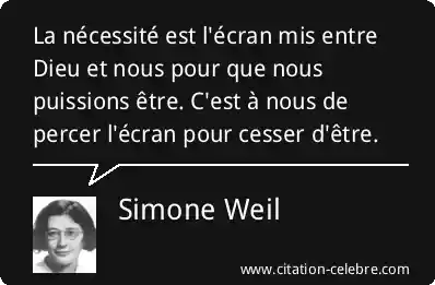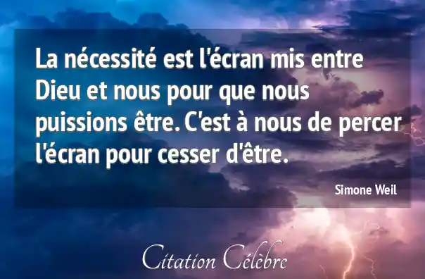 La nécessité est l'écran mis entre Dieu et nous pour que nous puissions être. C'est à nous de percer l'écran pour cesser d'être.