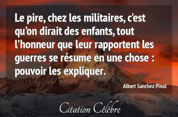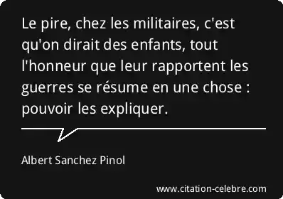 Le pire, chez les militaires, c'est qu'on dirait des enfants, tout l'honneur que leur rapportent les guerres se résume en une chose : pouvoir les expliquer.