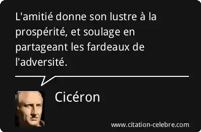 L'amitié donne son lustre à la prospérité, et soulage en partageant les fardeaux de l'adversité.