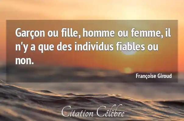 Garçon ou fille, homme ou femme, il n'y a que des individus fiables ou non.