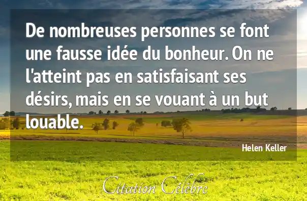 De nombreuses personnes se font une fausse idée du bonheur. On ne l'atteint pas en satisfaisant ses désirs, mais en se vouant à un but louable.