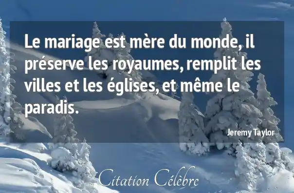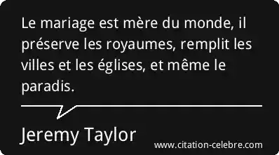 Le mariage est mère du monde, il préserve les royaumes, remplit les villes et les églises, et même le paradis.
