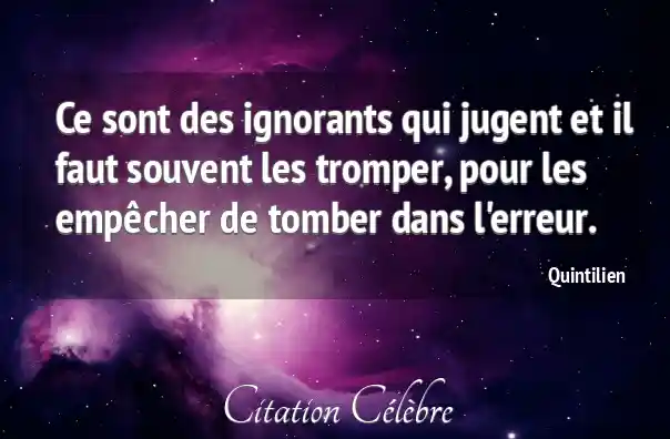 Ce sont des ignorants qui jugent et il faut souvent les tromper, pour les empêcher de tomber dans l'erreur.